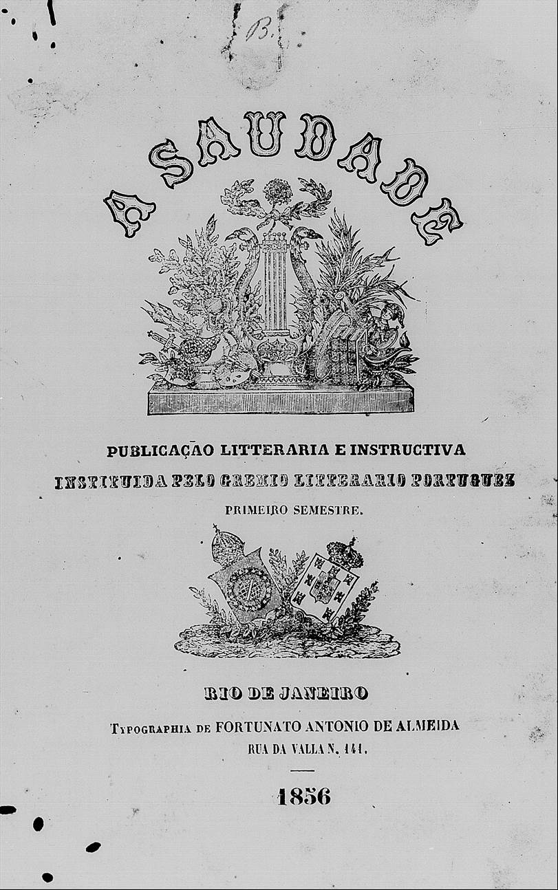 GRÊMIO LITERÁRIO PORTUGUEZ. A saudade: publicação litteraria e instructiva. Rio de Janeiro: Typographia de Fortunato Antonio de Almeida, Rua da Valla, n.º 144, 1856.